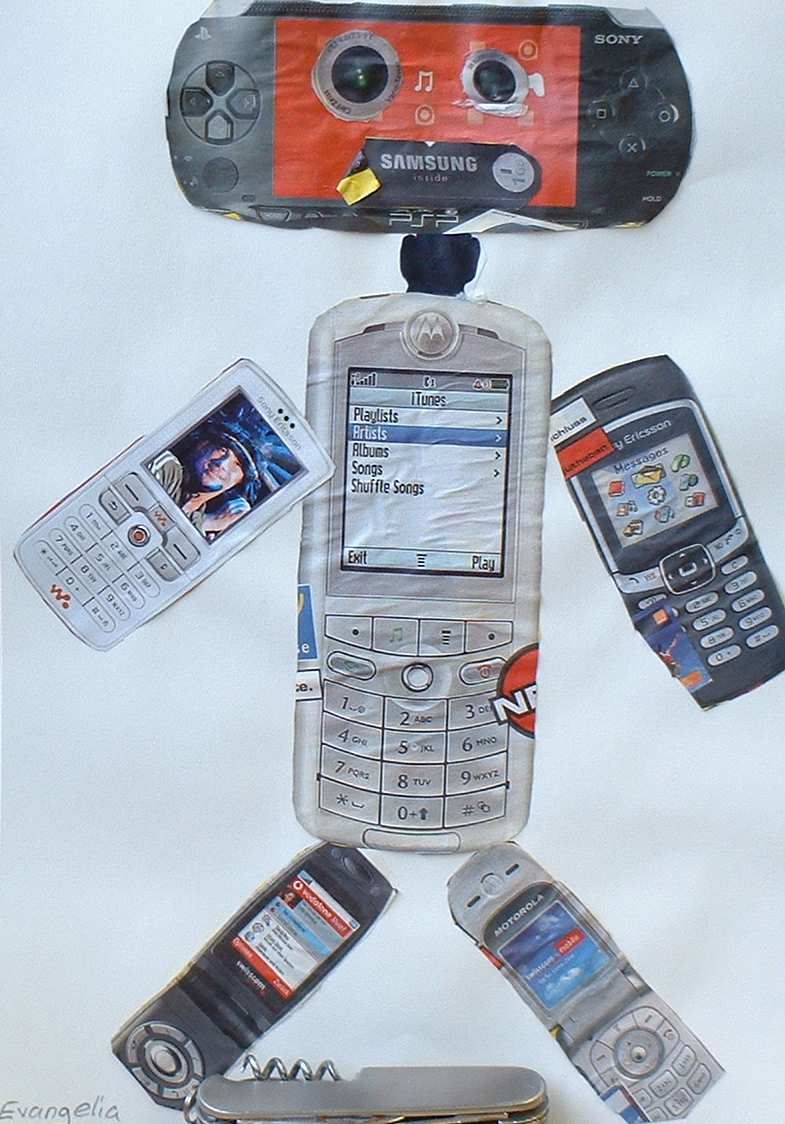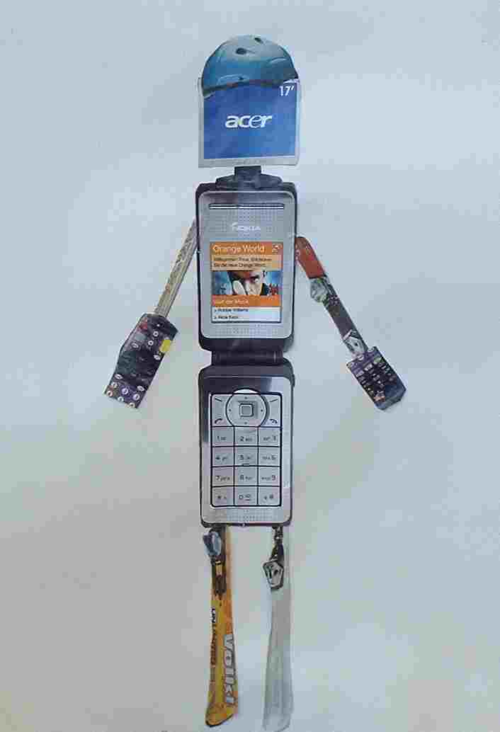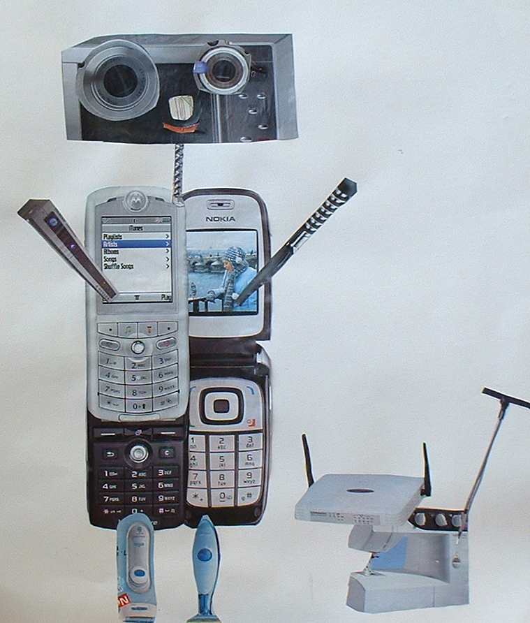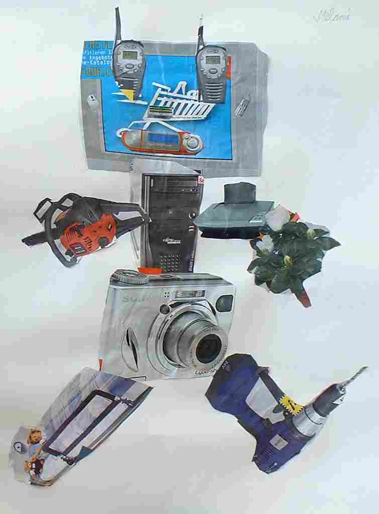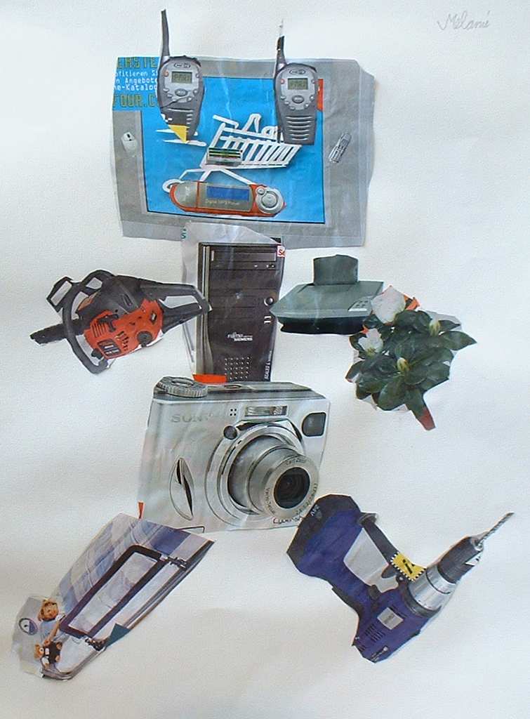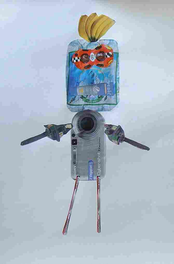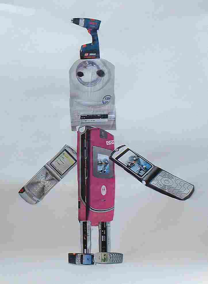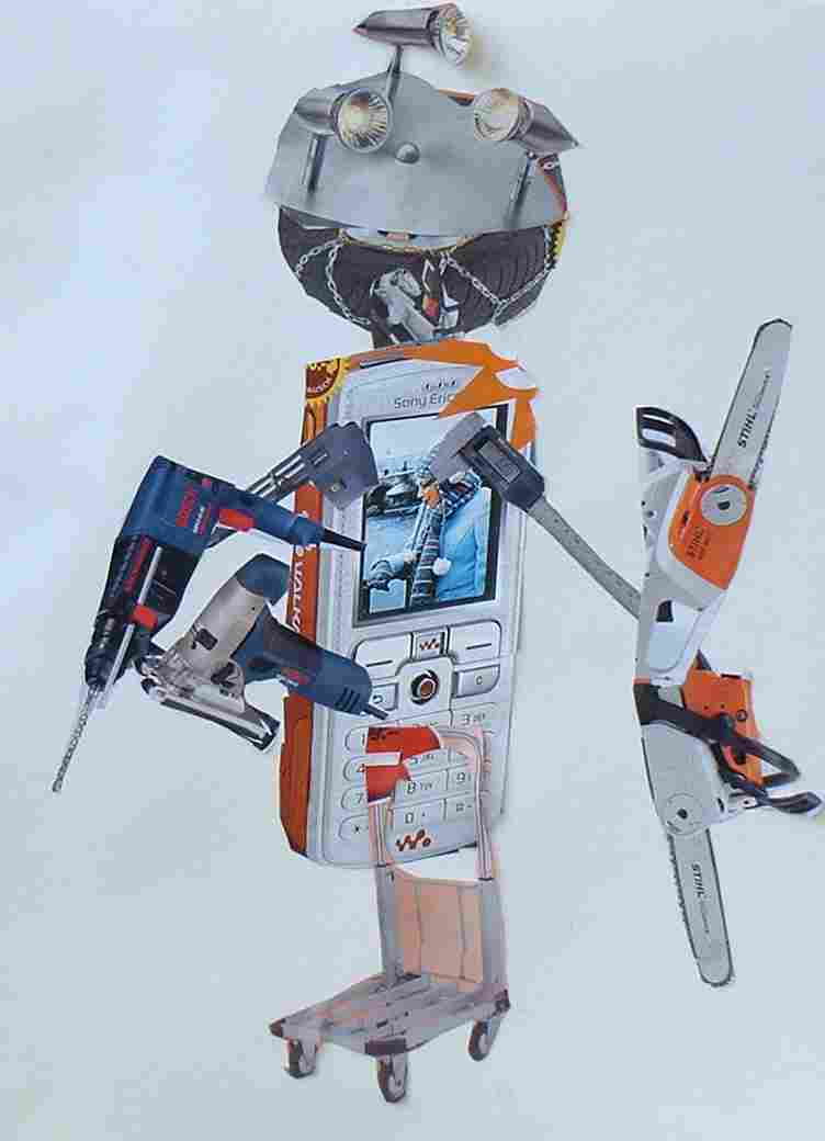 Aus Gegenständen, die sie in Katalogen ausgeschnitten hatten, kreierten die Schülerinnen und Schüler witzige Roboter |